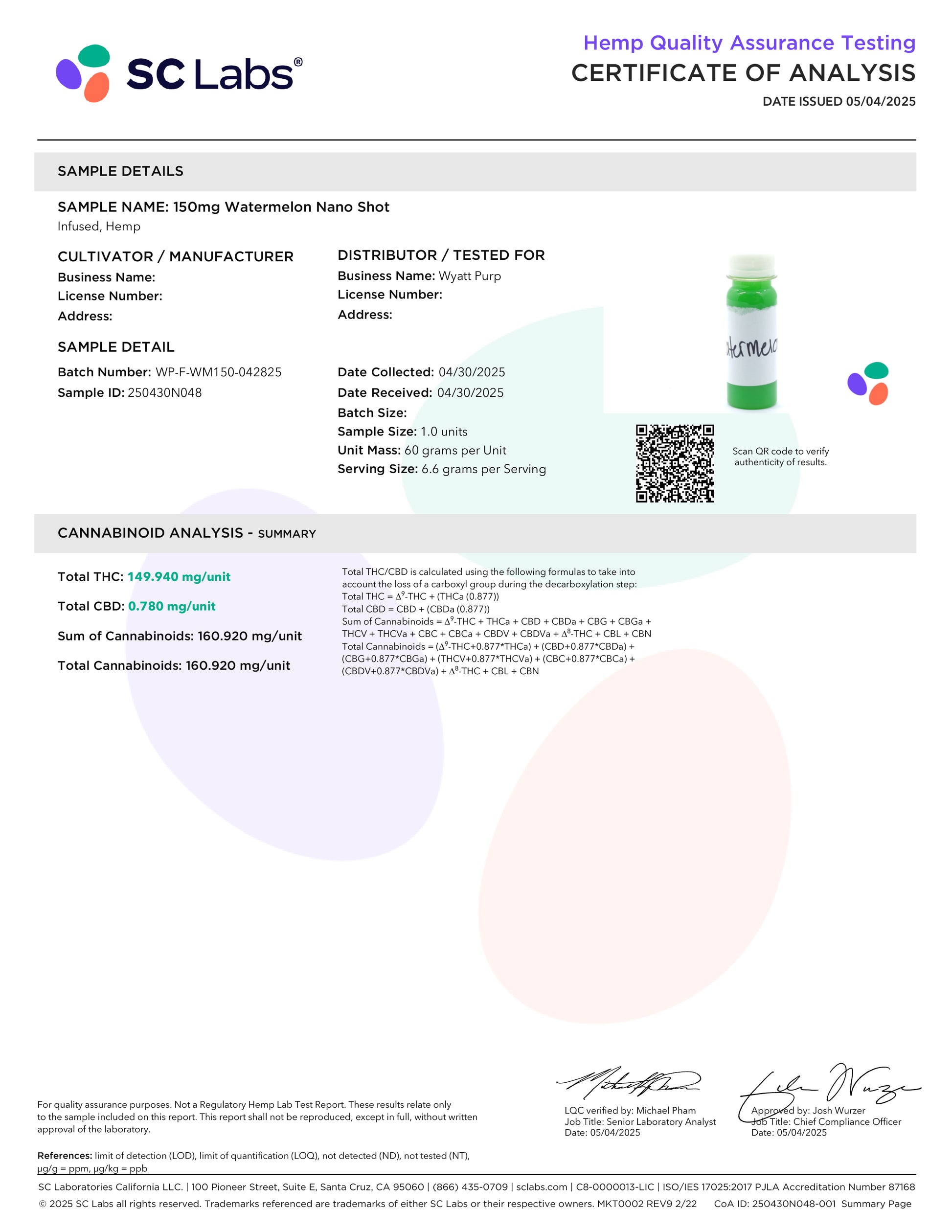 Delta 9 THC HD9 Nano Syrup Shot 150 MG Drinkable Edible: Watermelon