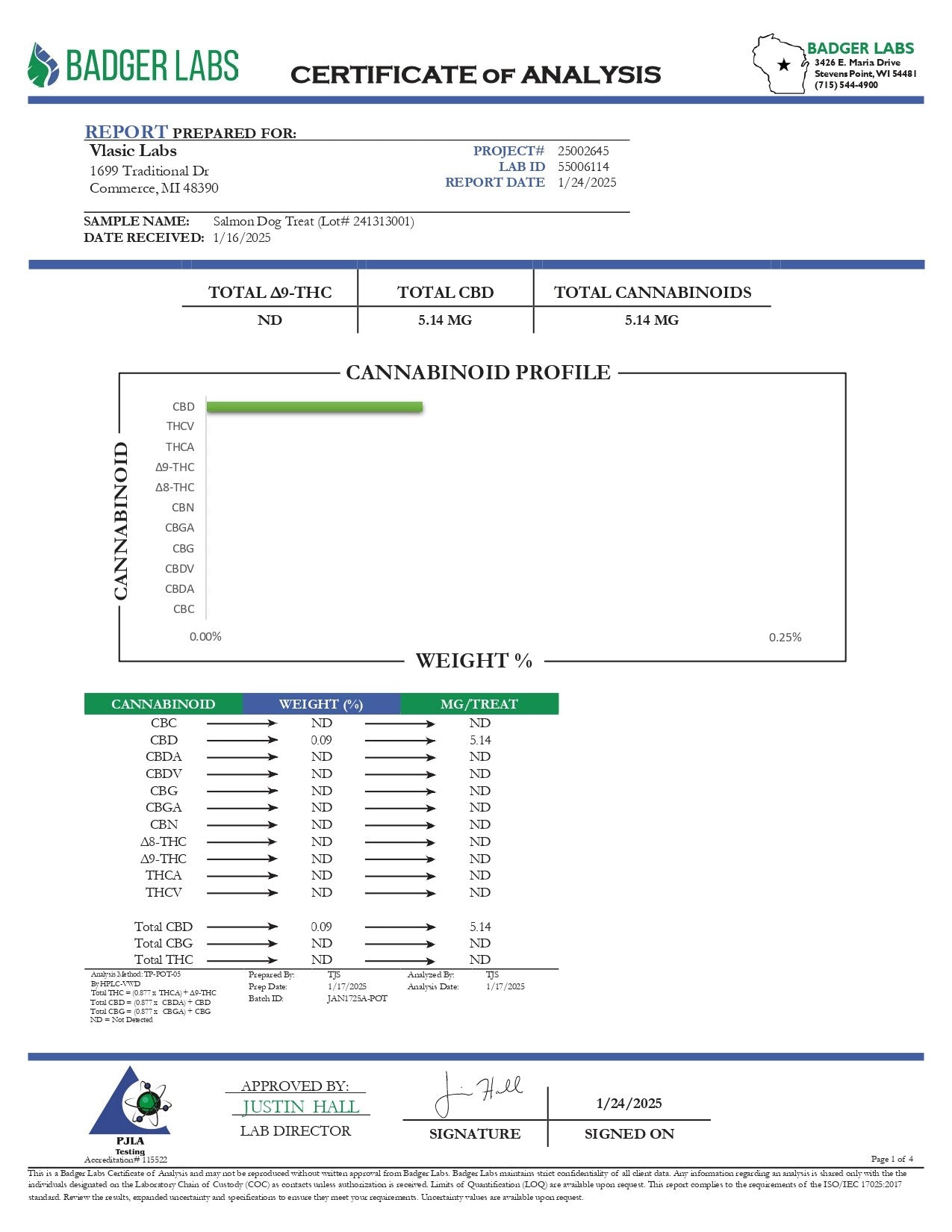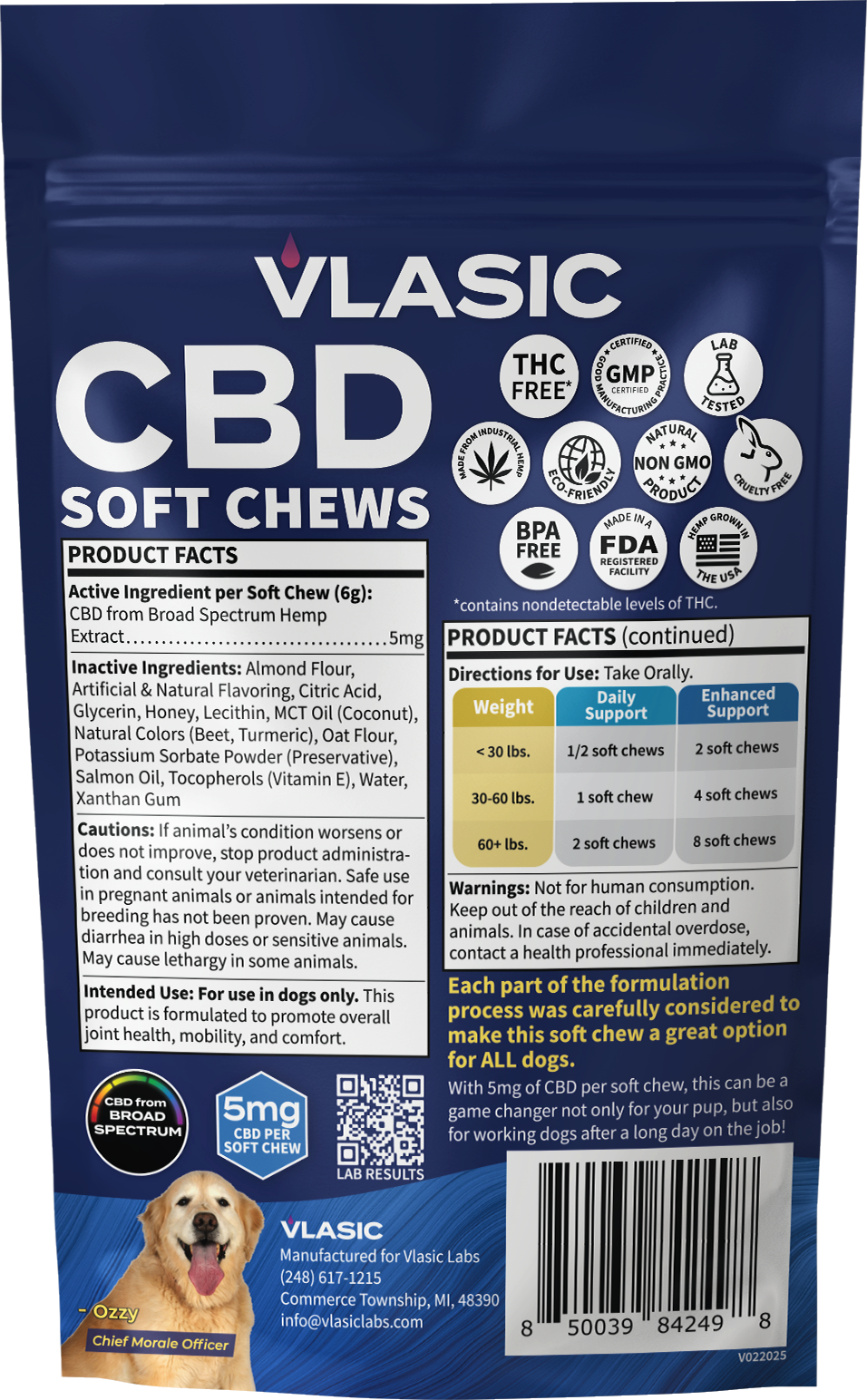 Treat your pet to the goodness of hemp with Vlasic Labs CBD Salmon Soft Chews. Each chew is made with premium hemp extract and a delicious salmon flavor that dogs love. The soft, breakable texture makes them easy to portion for dogs of all sizes and ages.
